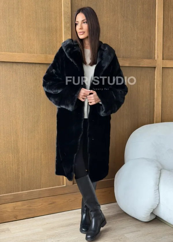 Черная норковая шуба с капюшоном 102765