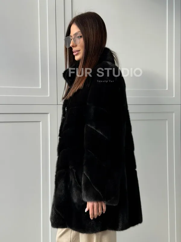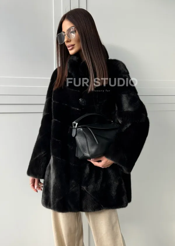 Черная норковая шуба - стойка воротник 102848