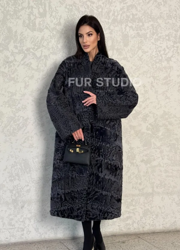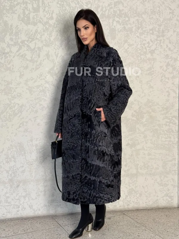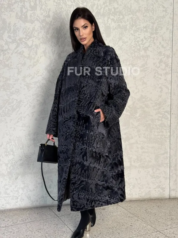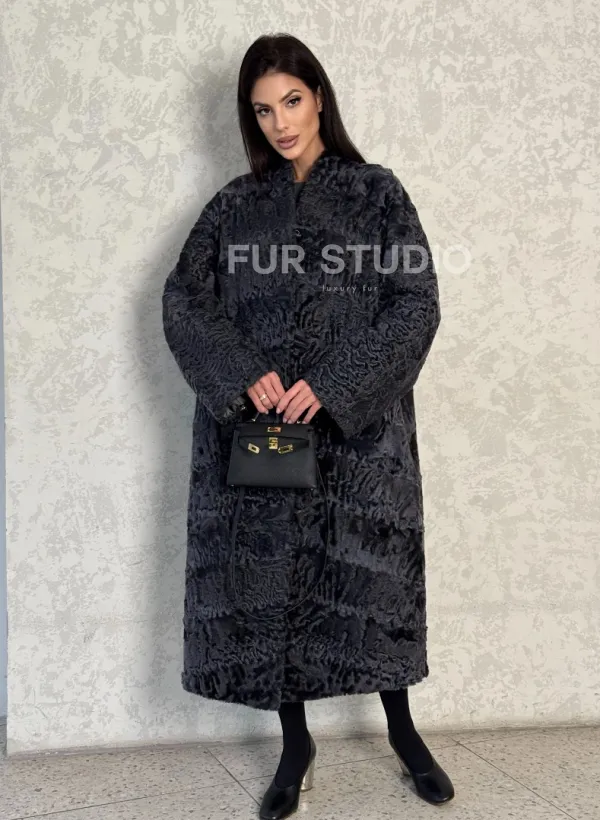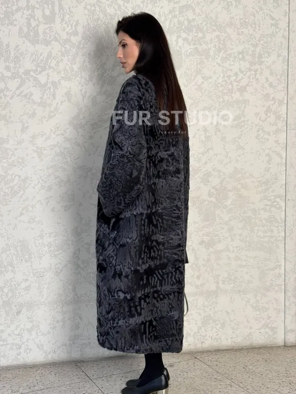 Длинная шуба из каракуля в цвете графит 100128
