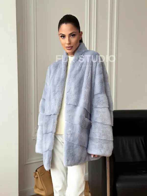 Голубая норковая шуба - жакет 102728