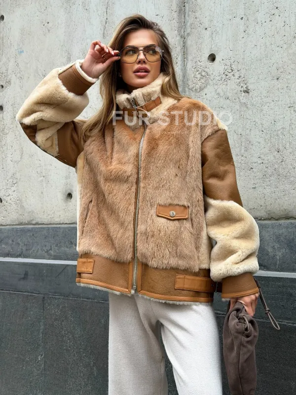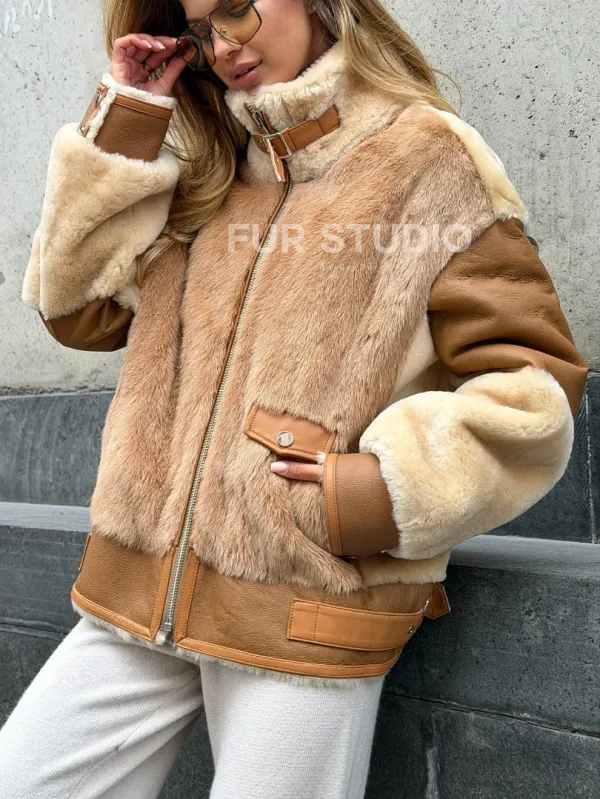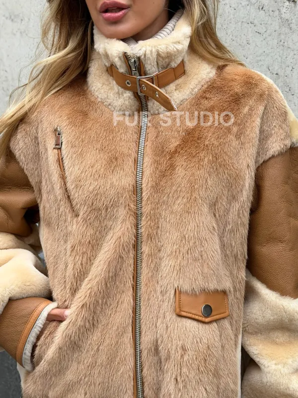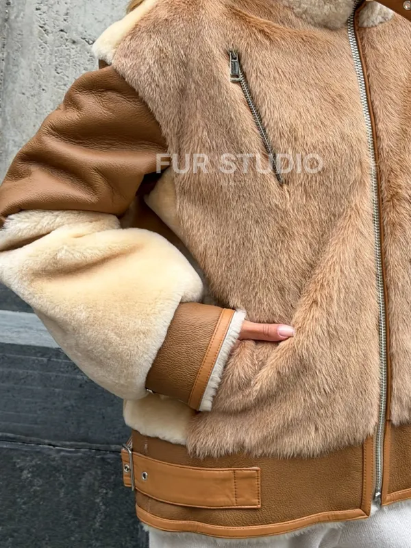 Комбинированная дубленка из овчины и норки 102540