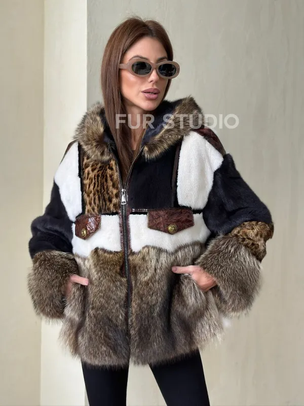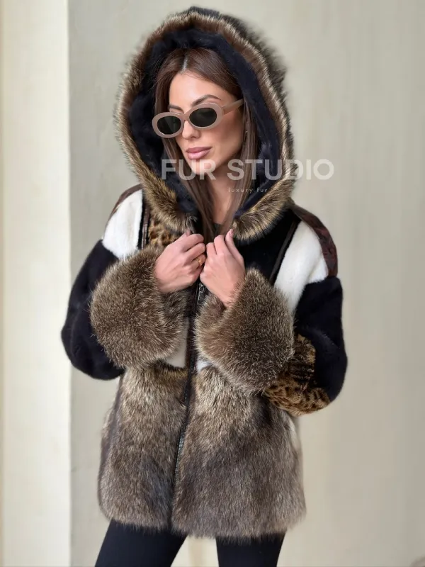 Комбинированная норковая куртка с капюшоном доступна для покупки в нашем магазине Furs Studio в , с возможностью доставки в любой город России. Добавьте немного стиля и элегантности в свой гардероб с этой курткой, которая будет вам служить многие годы, подчеркивая ваш неповторимый стиль.