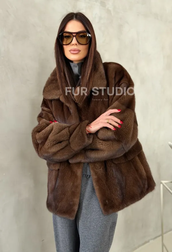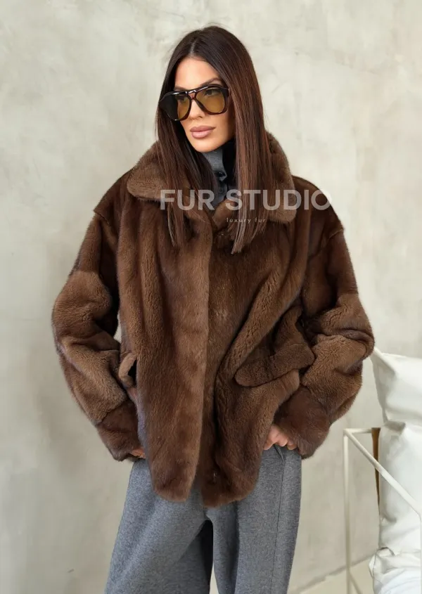 Короткая норковая шуба под соболь 102776