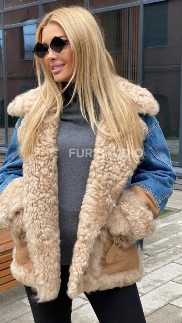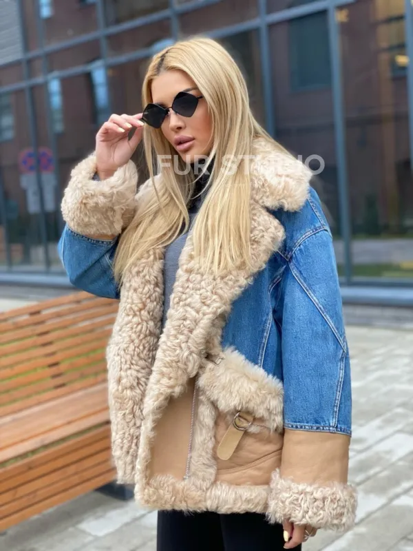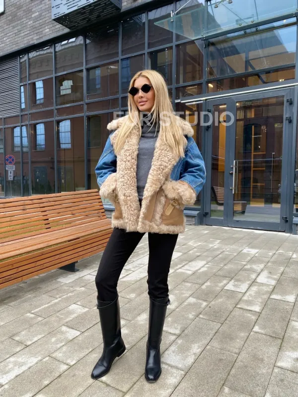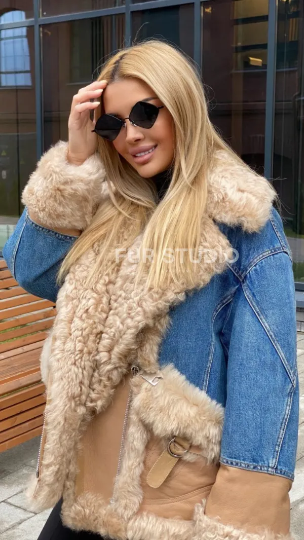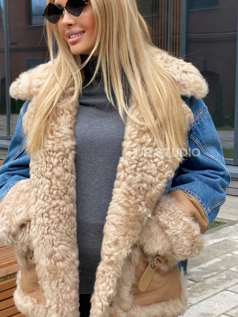 Куртка джинсовая с отделкой из натуральной овчины 100271