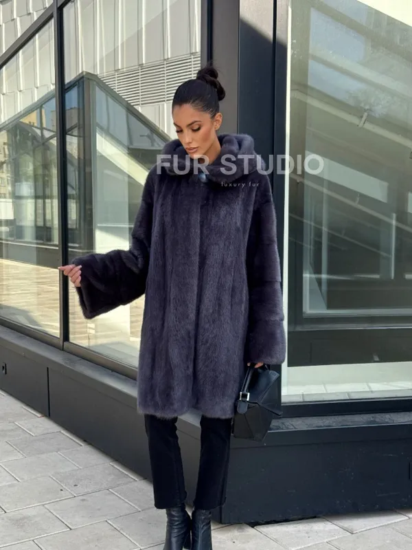 Норковая шуба с капюшоном, роспуск - темный графит доступна для покупки в нашем шоуруме Furs Studio в . У нас так же есть доставка во все города России. Добавьте немного роскоши в свой гардероб с этой шубой, которая будет служить вам многие годы.