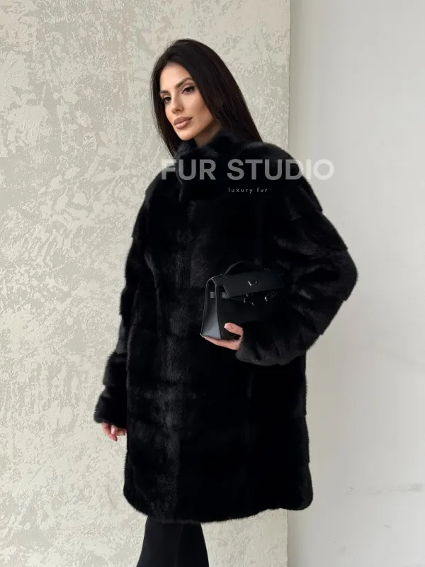 Норковая шуба в черном цвете воротник стойка доступна для покупки в нашем шоуруме Furs Studio в . У нас так же есть доставка во все города России. Добавьте немного роскоши в свой гардероб с этой шубой, которая будет служить вам многие годы.