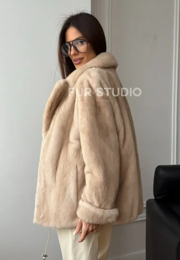Норковый полушубок в натуральном цвете пастель 102297
