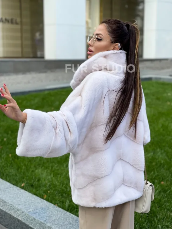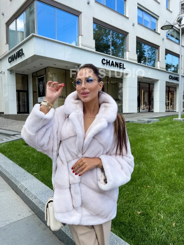 Мех данной шубы аукционная норка, цвет белый. Предлагается в размерах от 40 до 50. Длина модели 70-75 см, что выгодно подчеркивает фигуру девушек. Эта модель идеально подойдет для девушек и женщин, предпочитающих роскошные натуральные меха.