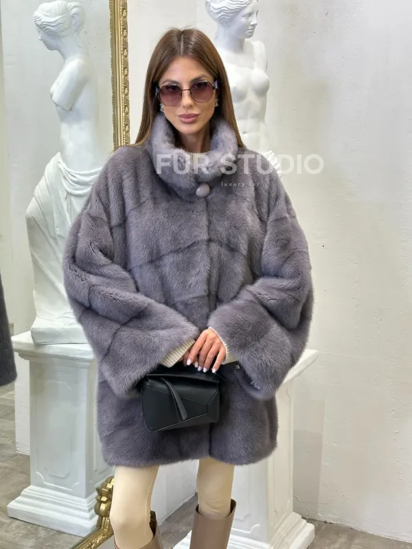 Норковая шуба стойка воротник, цвет фиолетовый – необычная модель для истинных модниц. Изделия из норки – всегда указывают на статус и вкус владелицы. Модель подчеркивает изысканность и безукоризненный стиль хозяйки. Воротник стойка акцентирует внимание на изяществе шеи. Оптимальная длина удобна при носке. Прямой силуэт подчеркнет достоинства фигура.