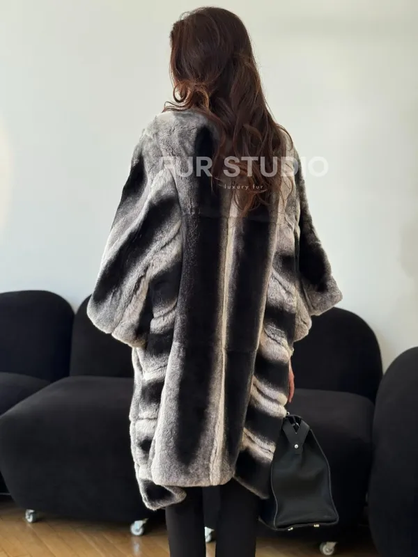 Мех данной шубы кролик рекс , цвет серый. Предлагается в размерах от 40 до 54 (oversize). Длина модели 95-100 см, что выгодно подчеркивает фигуру девушек. Эта модель идеально подойдет для девушек и женщин, предпочитающих роскошные натуральные меха.
