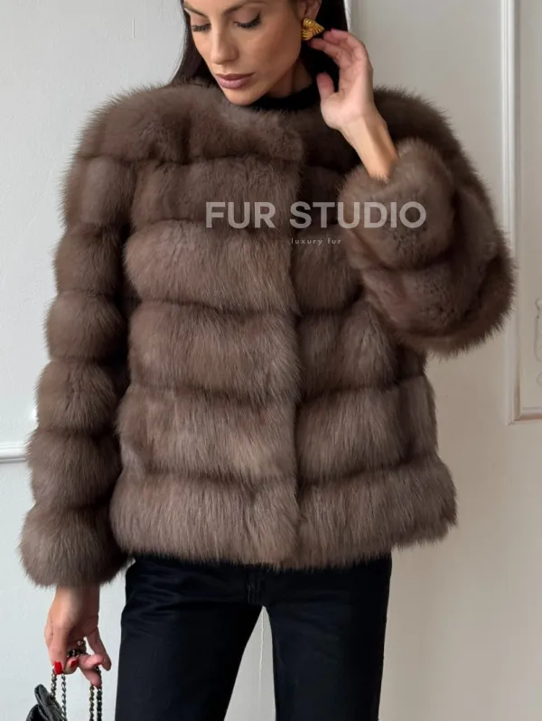 Мех данной шубы лесная куница, цвет натуральный. Предлагается в размерах от 42 до 48. Длина модели 50-55 см, что выгодно подчеркивает фигуру девушек. Эта модель идеально подойдет для девушек и женщин, предпочитающих роскошные натуральные меха.