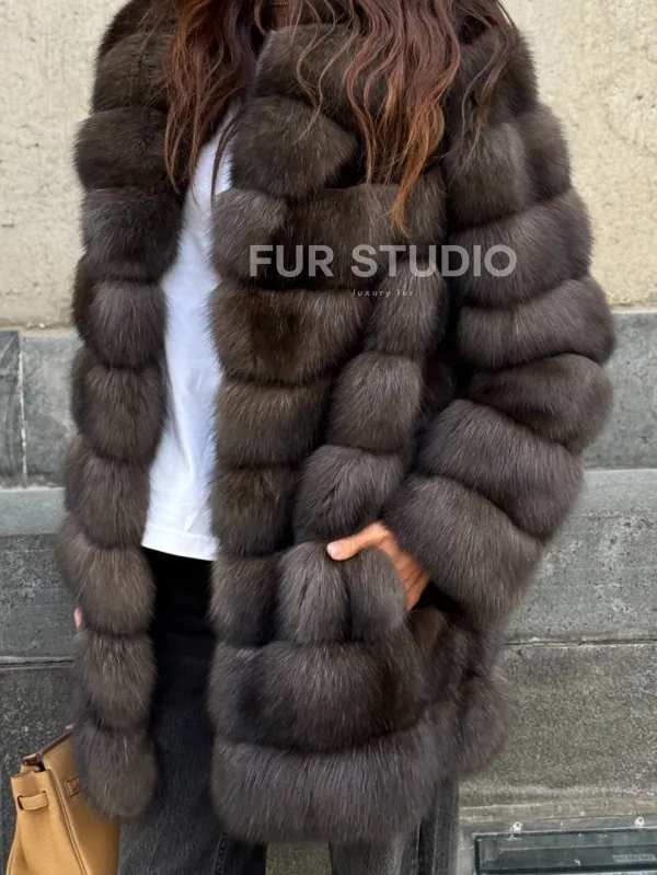 Оптимальная длина удобна в носке, не сковывает движение. Воротник стойка позаботится о шее в непогоду и подчеркнет ее изящество. Широкие рукава выделят тонкие кисти. Прямой крой удлиняет силуэт и зрительно скрывает недостатки фигуры. Купить шубу из меха соболя станет отличным вложением для женщин, которые не привыкли себе в чем-то отказывать.