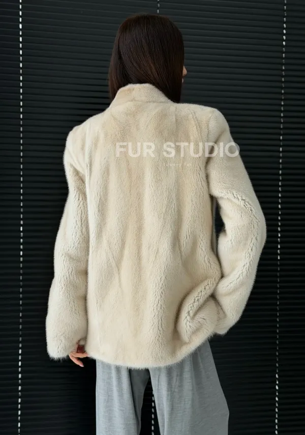 Светлый норковый жакет V-образный воротник 102922