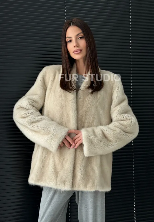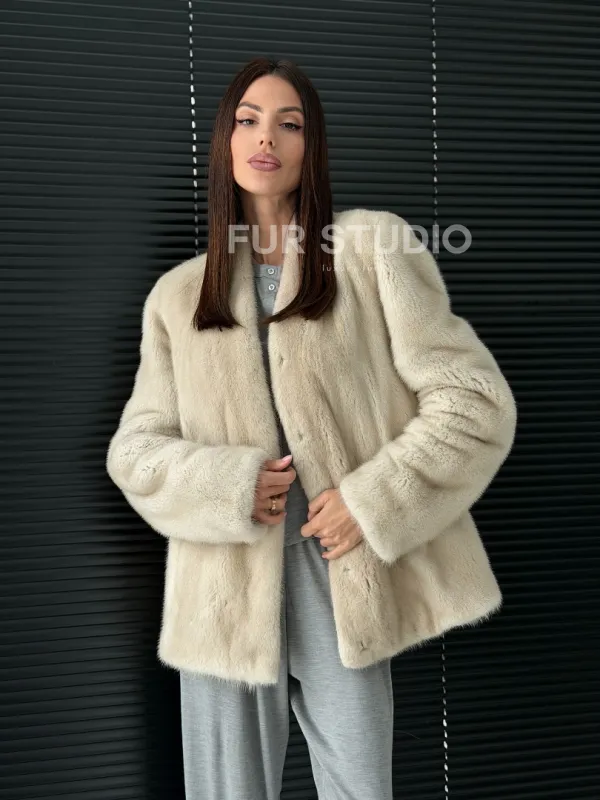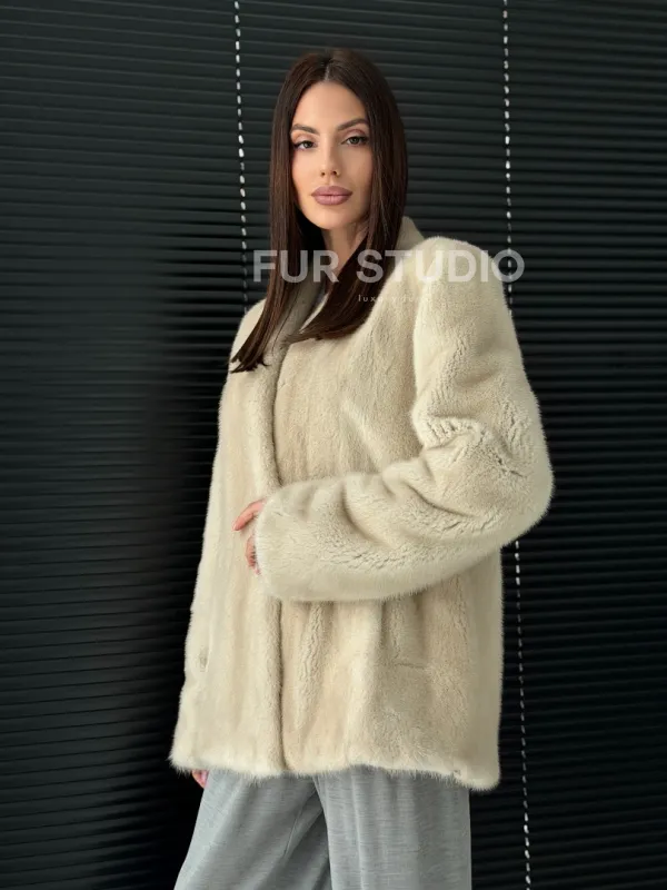 Светлый норковый жакет V-образный воротник доступна для покупки в нашем шоуруме Furs Studio в . У нас так же есть доставка во все города России. Добавьте немного роскоши в свой гардероб с этой шубой, которая будет служить вам многие годы.